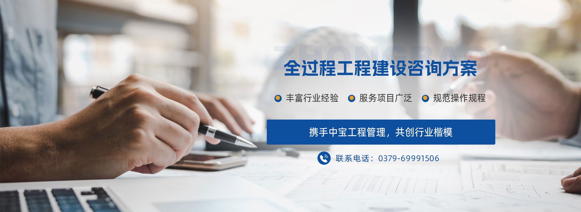 河南中寶工程管理服務有限公司是一個由十多位在工程咨詢服務及CPA行業有著多年工作經歷、豐富行業經驗、高素質人士于2009年開始籌劃運作凝聚而成的精英團隊,主要從事全過程工程咨詢、審計、工程造價、招標代理、資產評估、績效評價、可行性研究報告編制與評審、稅務咨詢與籌劃、政府和社會資本合作(PPP)項目咨詢與評審、政府專項債券全過程包裝咨詢、項目及建設項目全過程管理咨詢服務、工程設計、破產清算咨詢服務、課題及職稱服務等業務。2019年6月注冊,注冊資本為1018萬元,是集會計、審計、工程、評估、設計、招標、PPP項目、績效評價、政府專項債券、課題職稱為一體的綜合性鑒證機構及綜合性研發中心。公司注冊地址:河南省洛陽市洛龍區開元大道與關圣街交叉口怡和嘉園小區3號樓12樓1201室。是河南省全過程工程聯盟(河南省科技廳、河南省住建廳批準的全過程工程咨詢機構)常務理事單位,是洛陽技術研究院發起單位。協助洛陽技術研究院打造全過程聯盟洛陽技術研究院工程咨詢行業“六大平臺”:業務技術交流平臺、業務信息共享平臺、業務互助合作平臺、服務能力提升平臺、執業職稱促進平臺、科學技術研究平臺?! 」粳F有員工56人,全部為大學專科以上學歷,其中,本科及以上學歷占75%;中級、高級職稱人員占50%;擁有注冊執業資格證書人員占45%。公司有穩定的服務團隊和專家指導團隊,有河南省財政  廳及洛陽市財政評審專家5人,河南省財政廳績效評價入庫專家2人,河南省財政廳土地整治(理)評審專家1人,河南省財政廳高級會計師評審專家庫成員1人,河南省綜合評標專家庫專家1人,河南省審計廳外聘審計專家庫專家1人,河南省財政廳政府和社會資本合作(PPP)專家1人?! 」臼冀K注重加強內部治理。按照國家法律法規和行業規范,先后制訂了《業務質量控制及監督檢查機制》、《業務質量責任追究與賠償機制》、《采購代理業務內部監督管理辦法》、《項目管理責任制》、《重大風險事項報告制度》、《緊急預案和糾偏方案》、《保密工作條例》、《檔案管理制度》、《員工行為規范》等近20項規章制度,以樹立企業理念,規范操作規程,嚴格質量把控,強化責任擔當?! 」緦嵭行畔⒒芾怼^k公設備自動化程度高、設備齊全;建立了信息管理系統、資料管理系統、質量管理系統,能夠全方面、快捷、準確的完成各種項目管理及相關咨詢業務,促使各工作流程、組織措施、技術措施、管理措施等相互促進,協調發展,極大地提高了工作效率,為業主項目的順利進展提供了可靠保障。